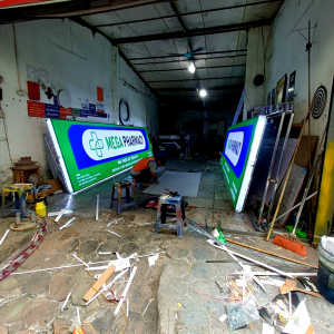 Được cố định bằng khung sắt mạ kẽm hoặc bằng khung nhôm rồi được gắn bóng led, tuýp led…ở hậu đằng sau. Với hồi có thể ốp bằng alu, fomex, tôn lá … và ke nhôm 1,5 hoặc ke bằng nhôm định hình.