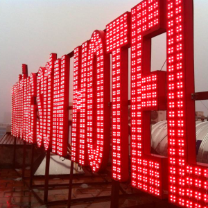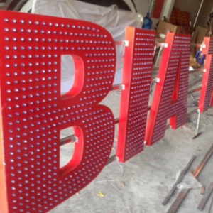 • Phần bộ chữ: Thường được làm bằng các chất liệu tôn sơn tĩnh điện, mica hoặc alumi. Các loại đèn thường dùng là led đúc, led thanh, led 3 mắt tùy vào kích thước bộ chữ led, logo